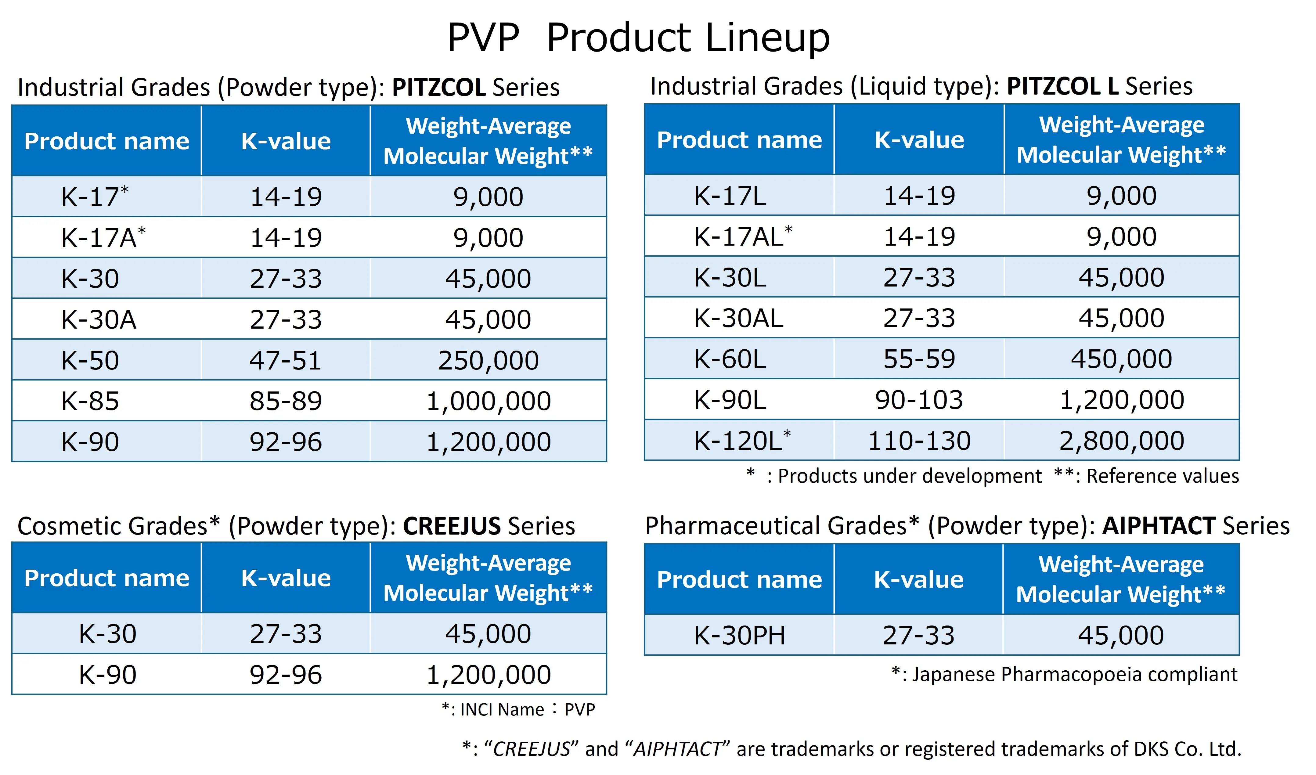 Depending on application needs, our PVP products are available in both powder form (PITZCOL series) and aqueous solution form (PITZCOL L series).