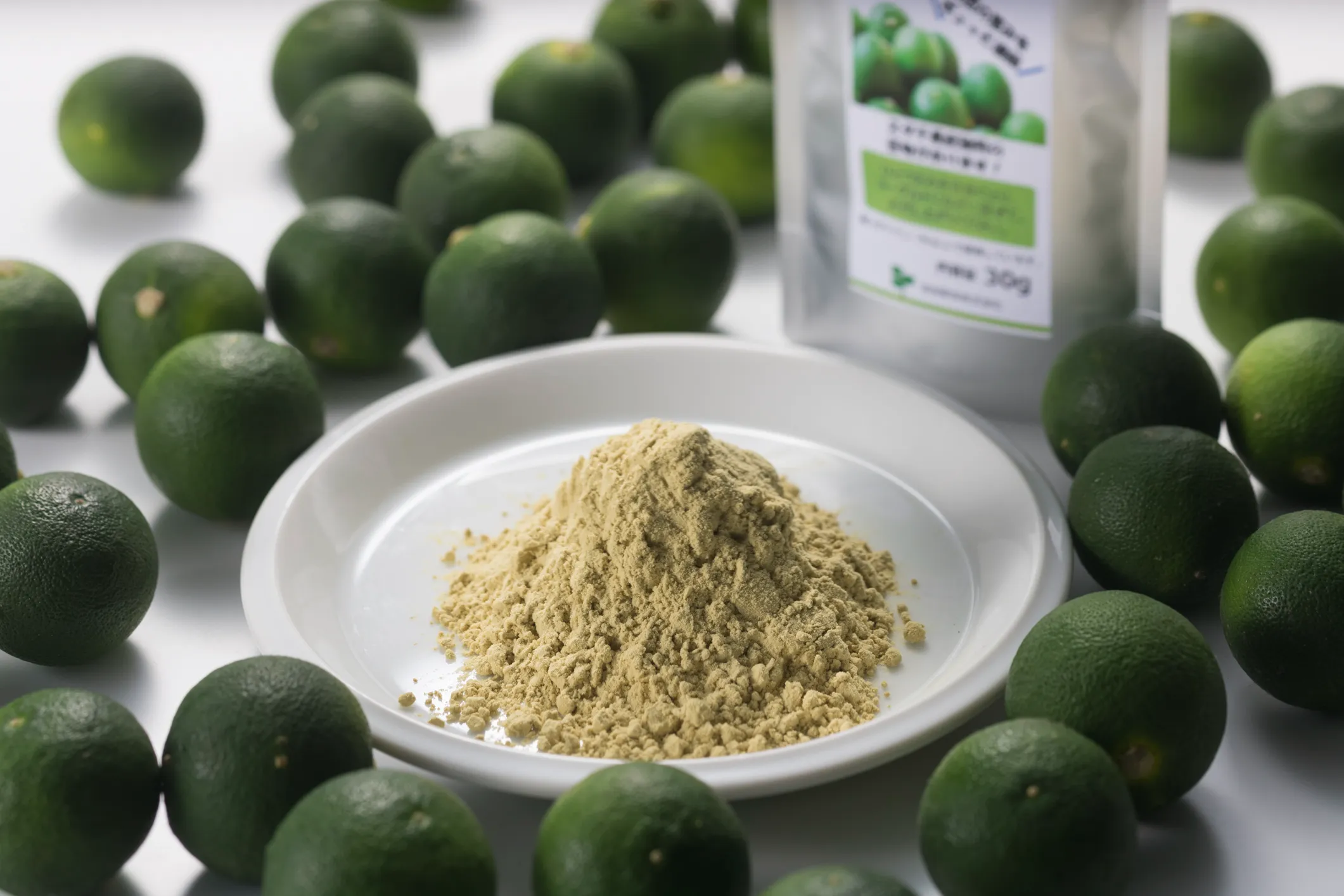 すだち果汁の搾汁残渣から抽出した食品原料(粉末)です。すだち特有のポリフェノール 「スダチチン」 を含有しています。
