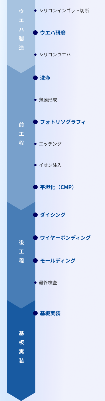 化学機械研磨 (Chemical Mechanical Polishing)向けの薬剤をラインアップしています。